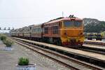 ALS 4136 (Co'Co', de, Alsthom, Bj.1974) fährt am 27.November 2025 mit dem ORD 258 (Nam Tok - Thon Buri) aus der Kanchanaburi Station.