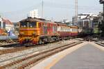 ALS 4151 (Co'Co', de, Alsthom, Bj.1974) am 22.März 2025 vor dem RAP 111 (Krung Thep Aphiwat - Den Chai) beim Strecken.Km 533,40 der Northern Line.