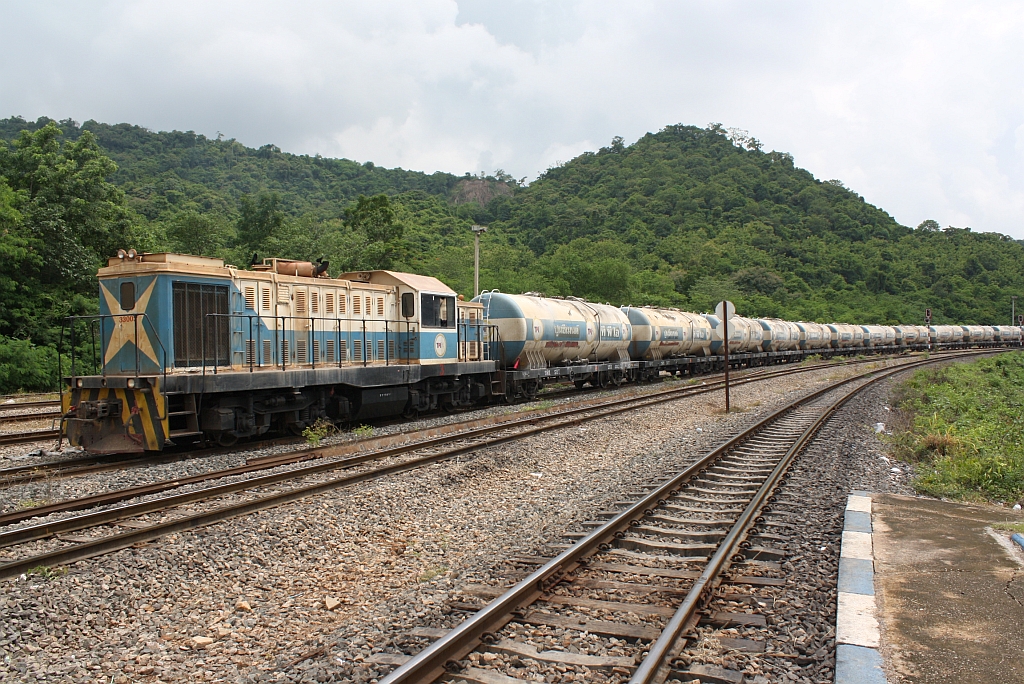 AHK 4229 (Co'Co', de, Henschel, Bj.1980, Fab.Nr. H-32466) verlässt mit einem Zementwagen-Ganzzug in Richtung Bangkok die Hin Lap Station. - Bild vom 23.August 2010.