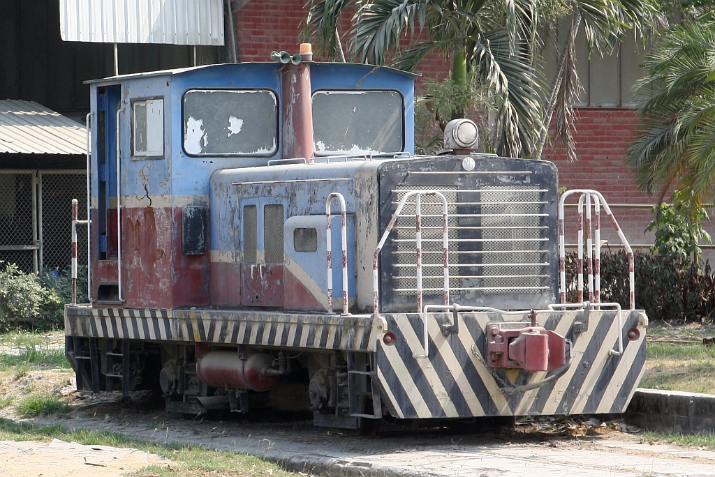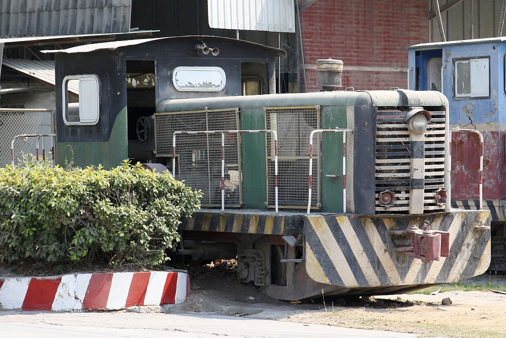 Angesichts des fortgschrittenen Verfalls dieser Feldbahndiesellok war eine Identifizierung nicht möglich. Aufgestellt über die Straße gegenüber der 943 beim Chatuchak Park. Bild vom 19.März 2011.