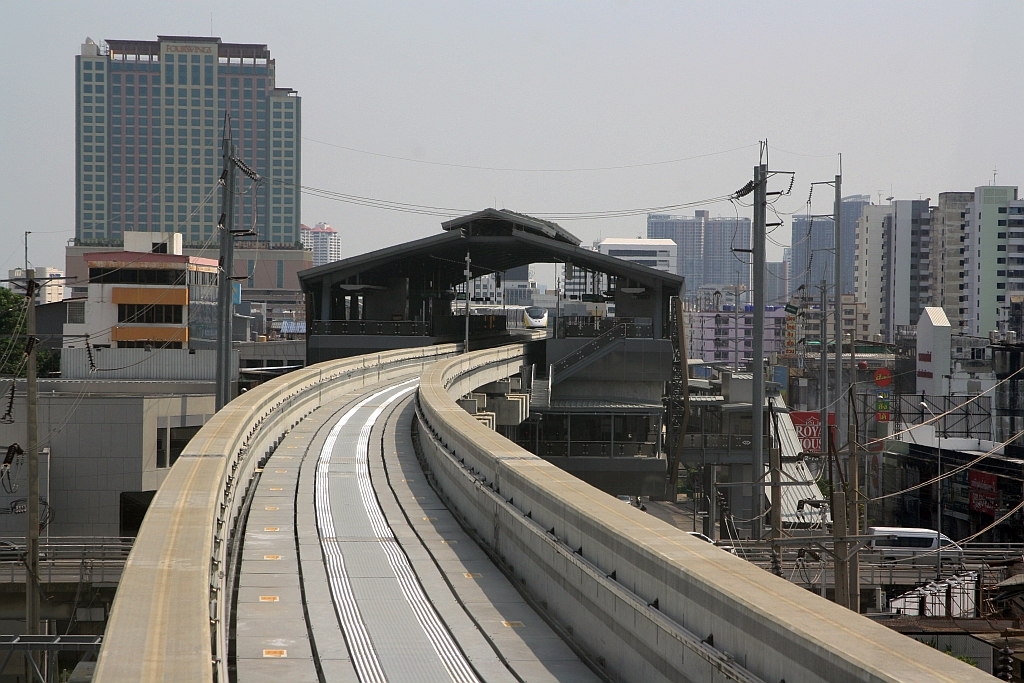 Blick von der MRT Yellow Line (YL) Yaek Lam Sali Station (YL09) auf den Streckenabschnitt in Richtung Si Kritha Station (YL10). - Bild vom 25.März 2024. Karl Seltenhammer