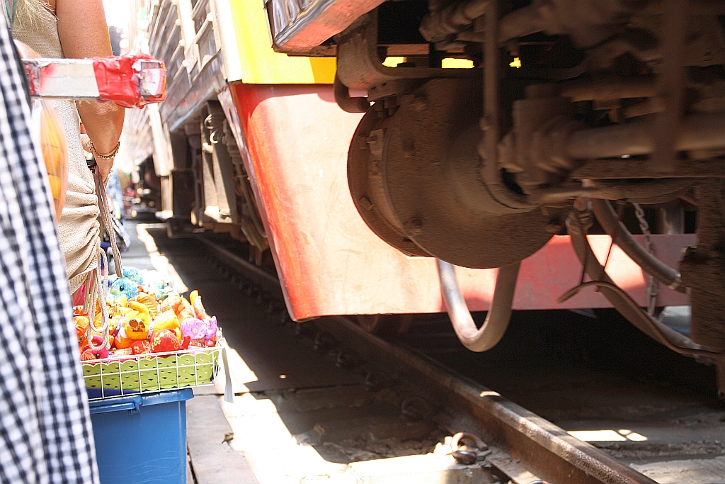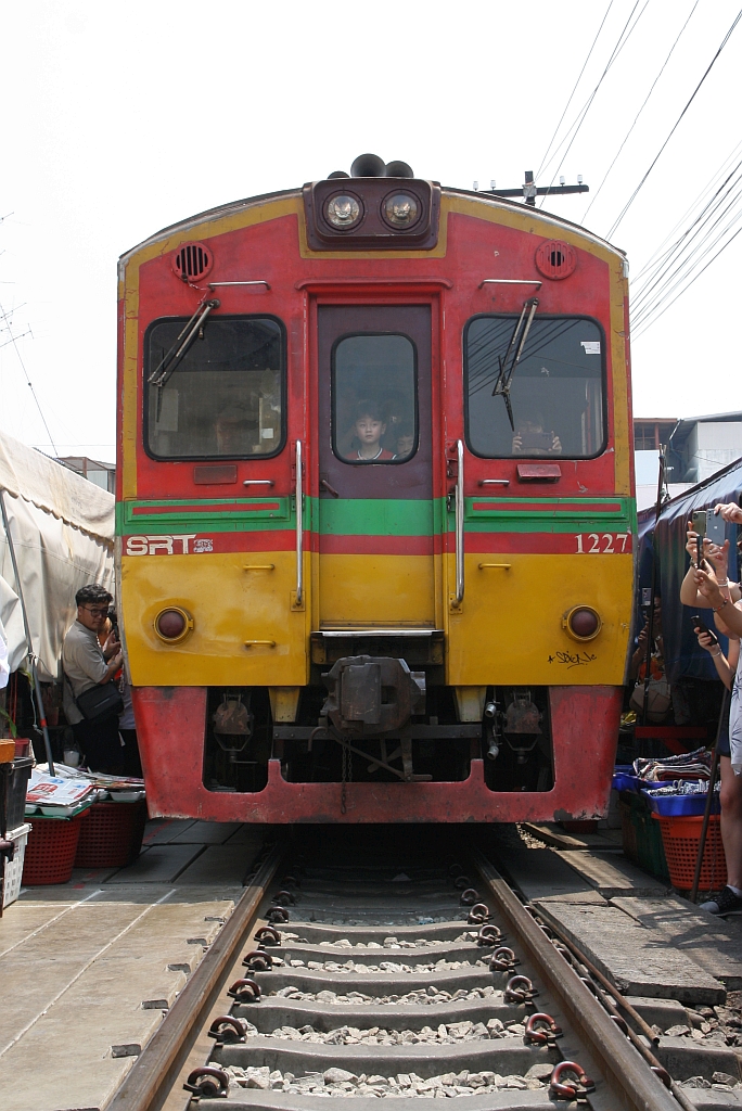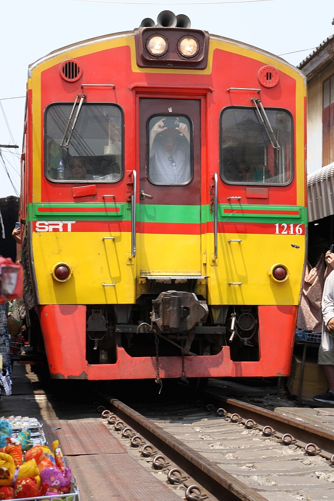 NKF 1221 (1A' 2', dh, Nippon Sharyo, Bj.1985) mit Totalwerbung am 07.Dezember 2010 im Bf. Ban Laem.