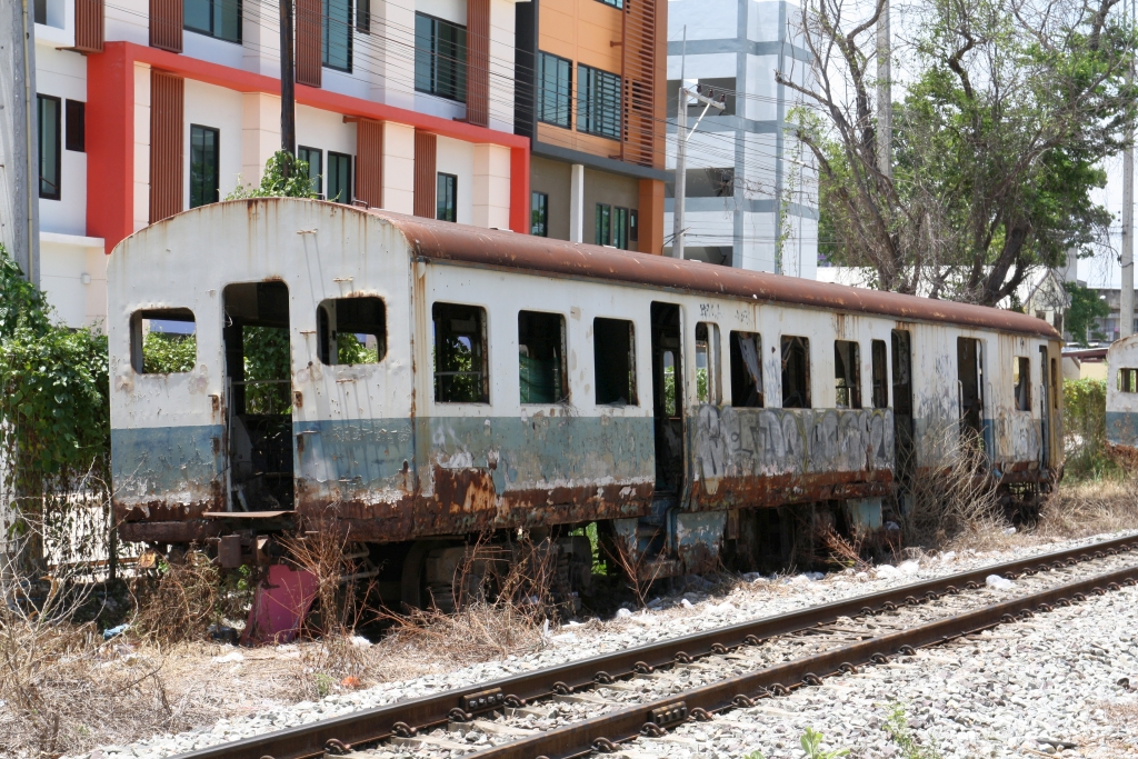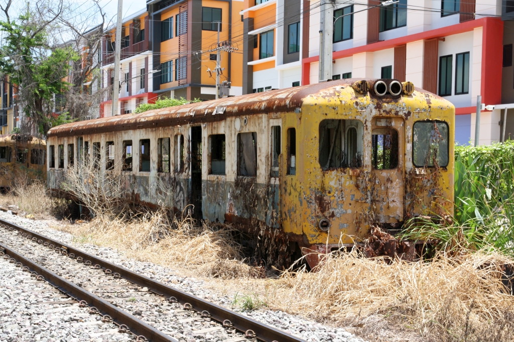 Nach wie vor steht der ausgeschlachtet Wagenkasten des RH 1001 (Niigata, Bauj. 1961) etwa 1,5 Km außerhalb der Mahachai Station. Bild vom 04.Juni 2018.