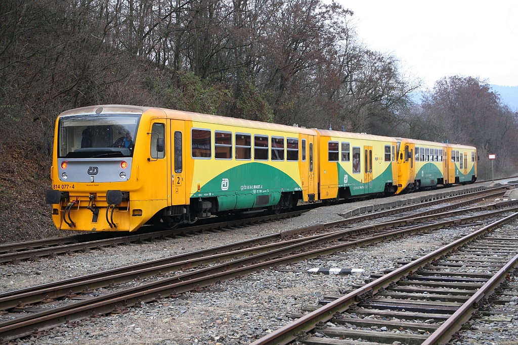 CSD 433 002 (UIC-Nr. CZ-CD 90 54 4330 002-5) am 01.Dezember 2018 mit dem Os 10800 nach Vsetin im Bahnhof Valasske Klobouky.
