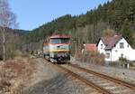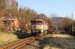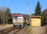 475 111 fuhr am 02.12.23 die Pendelfahrten von Sokolov nach Hrebeny und zurück. Hier ist der Zug in Luh nad Svatavou zu sehen. Am Zugschluss war 745 703. Endlich gab es dort auch mal Schnee.