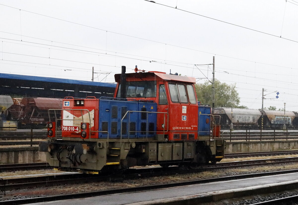 708 010-4 rangiert in Kutná Hora ( deutsch Kuttenberg) einer Stadt in Tschechien in der Region Mittelböhmen mit etwa 20.000 Einwohnern.Gewitter, Starkregen. 24.05.2024 10:10 Uhr.