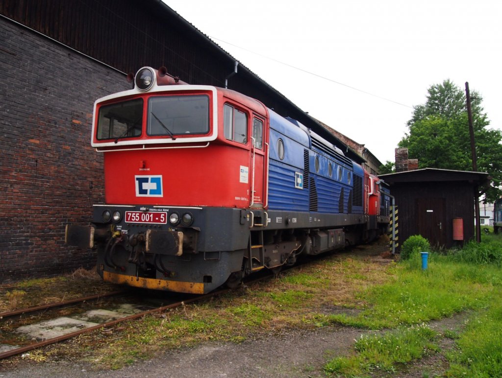 CD Cargo 755 001-5 in Kralupy nad Vltavou Hbf. am 6. 7. 2021. Abstellgleis