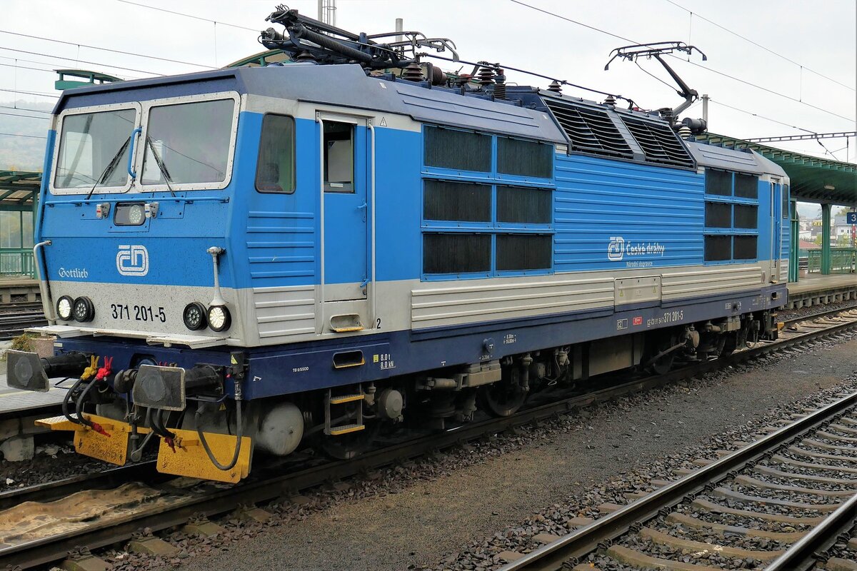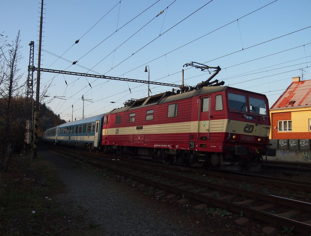 CD 371 004 Schnellzug durchfährt den Bahnhof Kralupy nad Vltavou am 13.11.2012.
