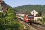 Am Morgen des 5. März 2013 rollt 371 003-5 bei Krippen die Elbe südwärts. Sie befördert EC 171 „Carl Maria von Weber“ auf den Weg nach Budapest.