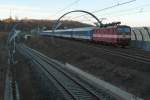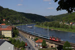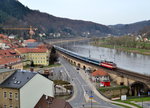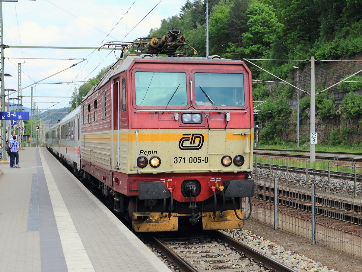 Einfahrt in den Bahnhof Bad Schandau 371 005-1 mit einem EC nach Hamburg am 21. Mai 2016.