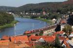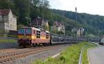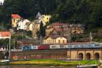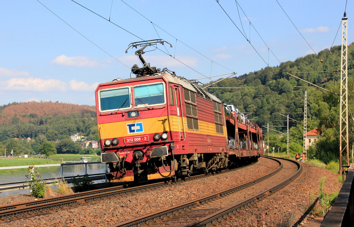 Skoda transportiert Skoda: 372 008 mit Automobilganzug aus Tschechien am 01.08.2013 bei Königstein.