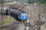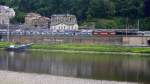 372 006-7 von der CD-Cargo kommt durch Bad-Schandau(D) mit einem langen gemischten Güterzug aus Decin(CZ) nach Leipzig-Engelsdorf(D) und fährt in Richtung Königstein,Pirna,Dresden-Hbf,Dresden-Friedrichstadt(Gbf)(D).