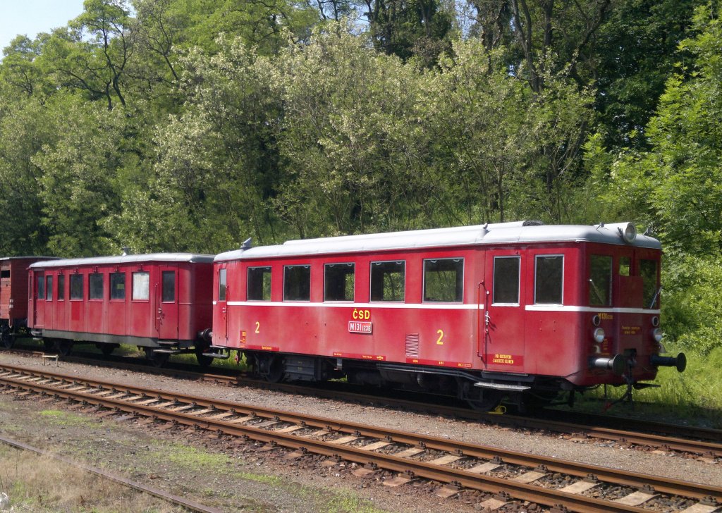 ČSD M131.1238 mit Beiwagen (Baujahr: 1950 Tatra)in Bahnhof Luzná u Rakovníka am 18.7. 2910. Eigner HERKULES KHKD s.r.o.