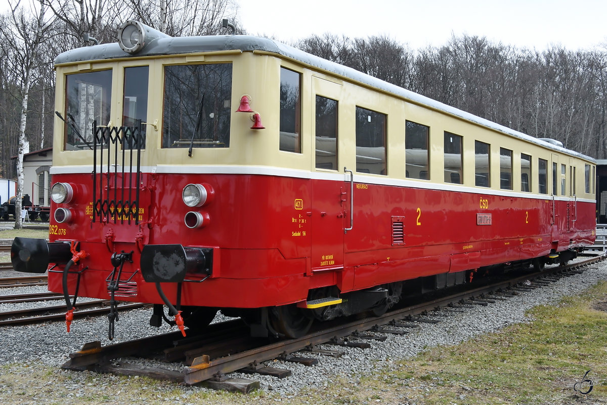 Der Dieseltriebwagen M 262 076 (830 076-6) Anfang April 2018 im Eisenbahnmuseum Lužná u Rakovníka.