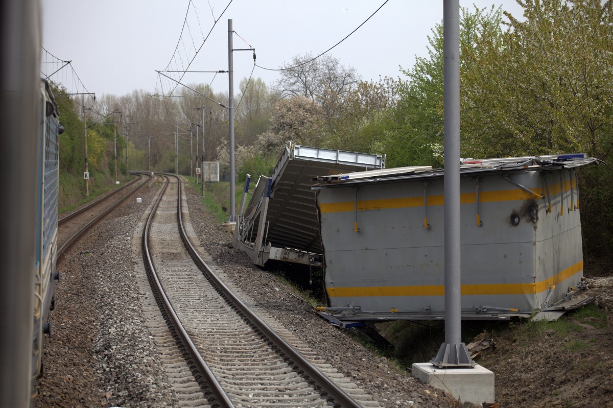 das Ende eines Autotransportwagens .... Nähe Usti nad Labem, rechte Elbstrecke.
