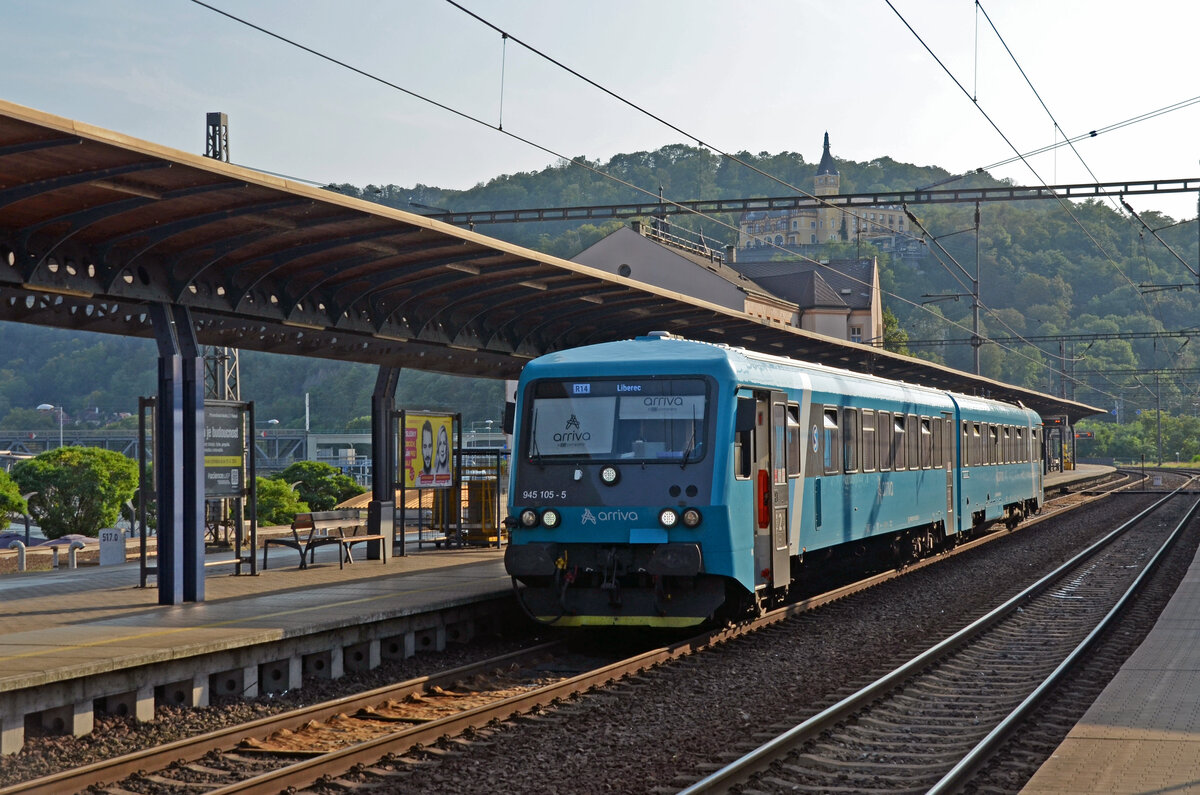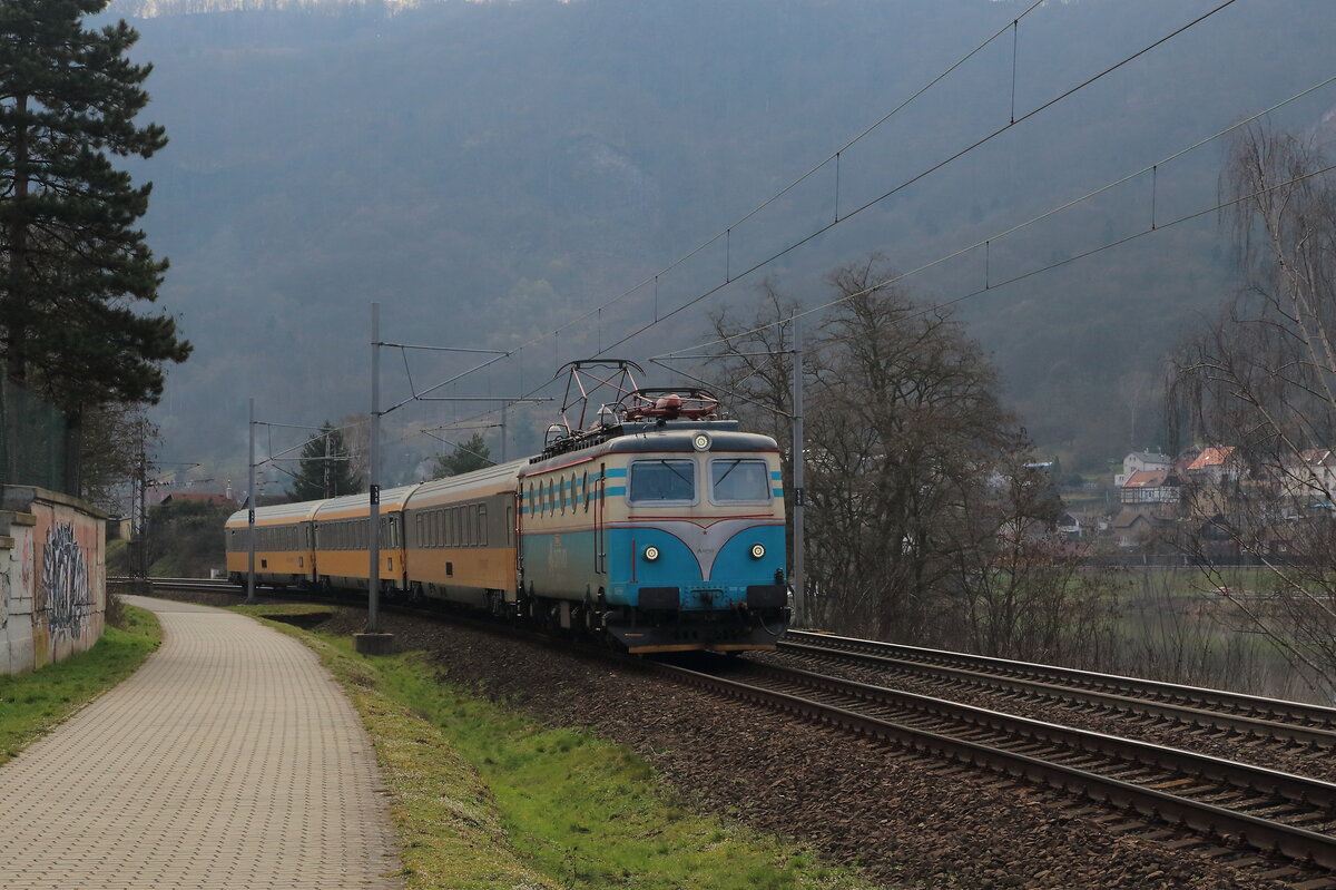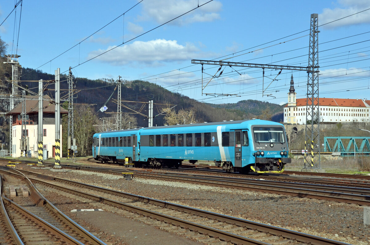 Arriva 140 052 im Einsatz bei Regiojet zwischen Kolin und Usti nad Labem. Aufgenommen bei Strekov kurz vor dem Ziel in Usti am 20.03.2023.