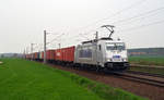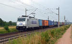 Die wunderschöne Werbelok von Metrans mit einem Containerzug von Budapest in Komárom Fbf. 386 020 mit Werbung "150 Jahre Hafenbahn Hamburg" (Eurorunner ist 761 003 von Metrans).
