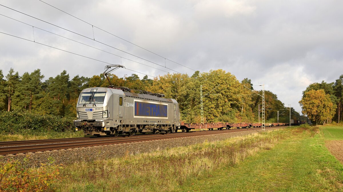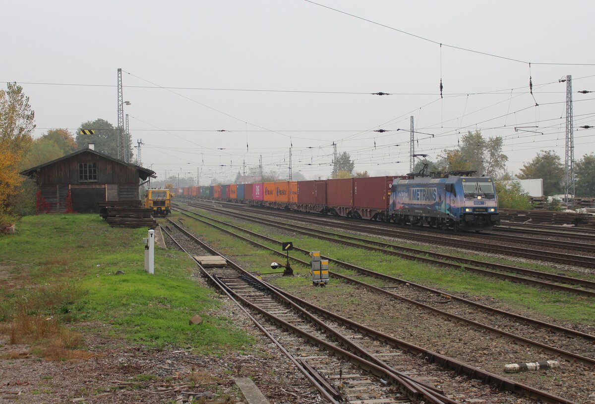 186 534-4 (Railpool/Metrans) zu sehen am 18.10.22 mit einem Containerzug in Velke Zernoseky.