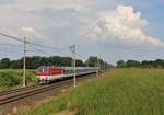 Vom Belvedere über Usti nad Labem hat man einen schönen Blick auf den Bahnhof Usti nad Labem h.l.n. mit dem dort abgestellten zweiteiligen RJ 654 006, Oktober 2025. Rainer Haufe