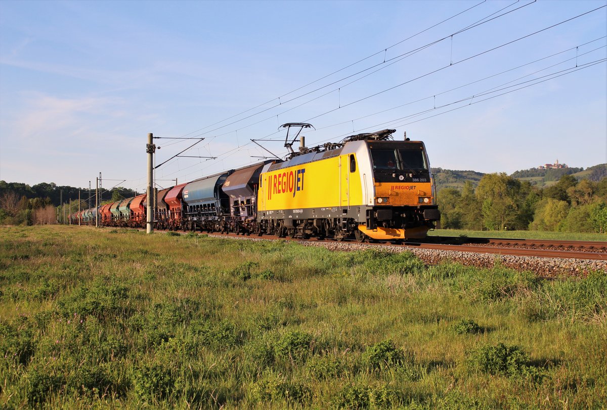 Am 17.05.2020 fuhr die 386 203 REGIOJET nochmal mit einem Lovo-Chemiezug von Tschechien nach Nördlingen.