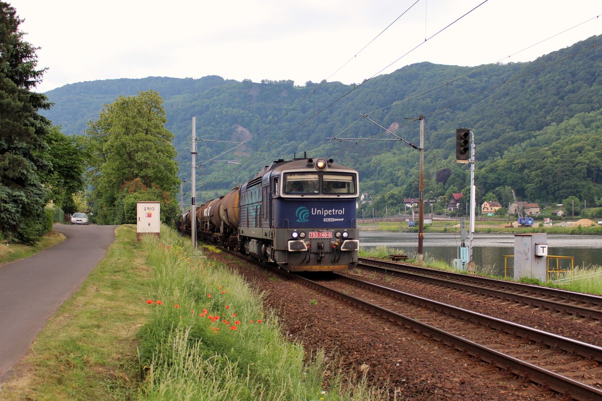 753 740-0 (Unipetrol) zu sehen am 23.05.18 in Ústí nad Labem-Střekov.