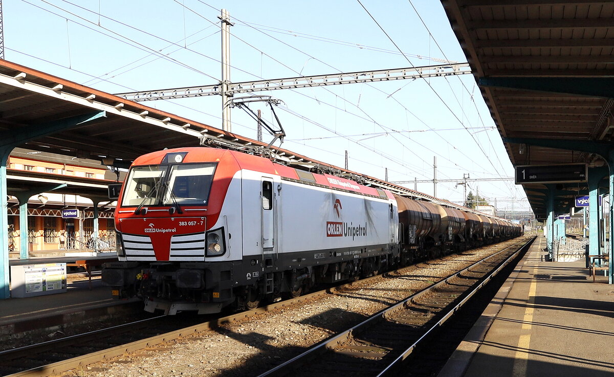 Mit einem Kesselwagenzug rollte 383 069 der tschechischen Unipetrol am 12.10.25 durch Wittenberg-Labetz Richtung Magdeburg.