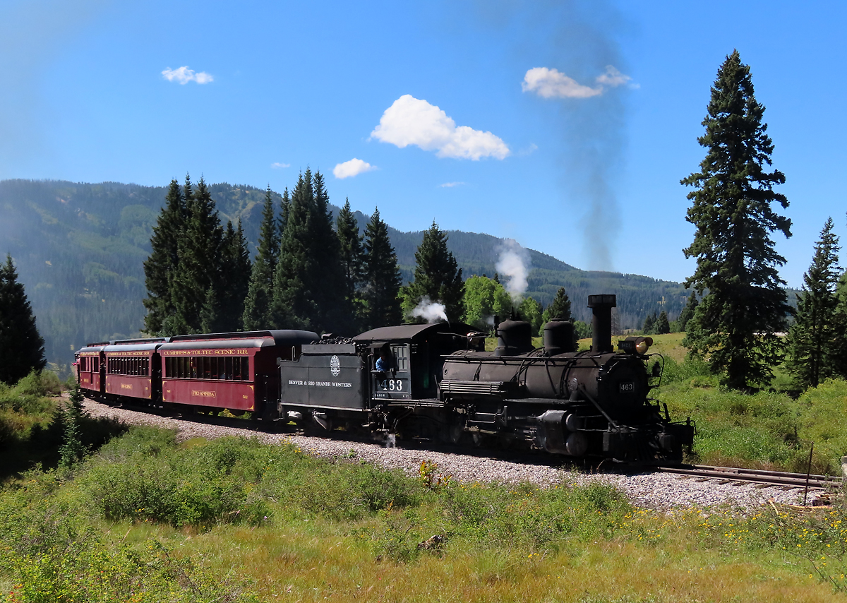 Die Weiterfahrt mit unserem Mietwagen liess sich so planen, dass wir bei einem Strassenübergang etwas unterhalb des Cumbrespasses zu diesee attraktive Fotostelle aufsuchen konnten. Dort machten wir unser letztes Bild von diesem wunderschönen Dampfzug. Nicht nur der Dampfzug mit seinen verschiedenen Wagen ist eine grosse Attraktion, auch die interessante Streckenführung ist höchst imposant! Cumbres-Pass, CO, 31.8.2022 Markus Gmür