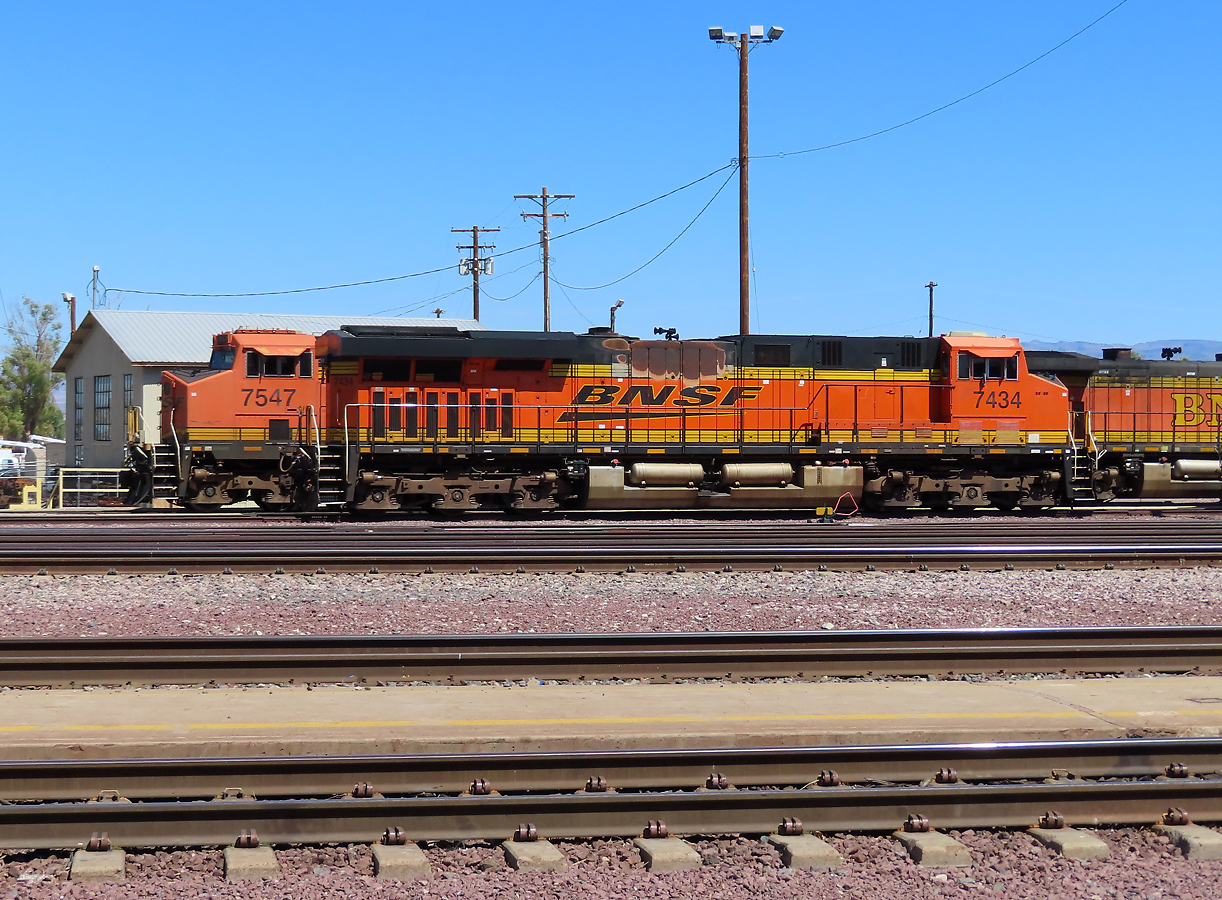 Eine Lok mit zwei Führerständen? Nein, die Lok 7547 steht hinter der Lok 7434. Ein Schnappschuss von genau der richtigen Stelle. Needles, CA, 19.9.2022 Markus Gmür