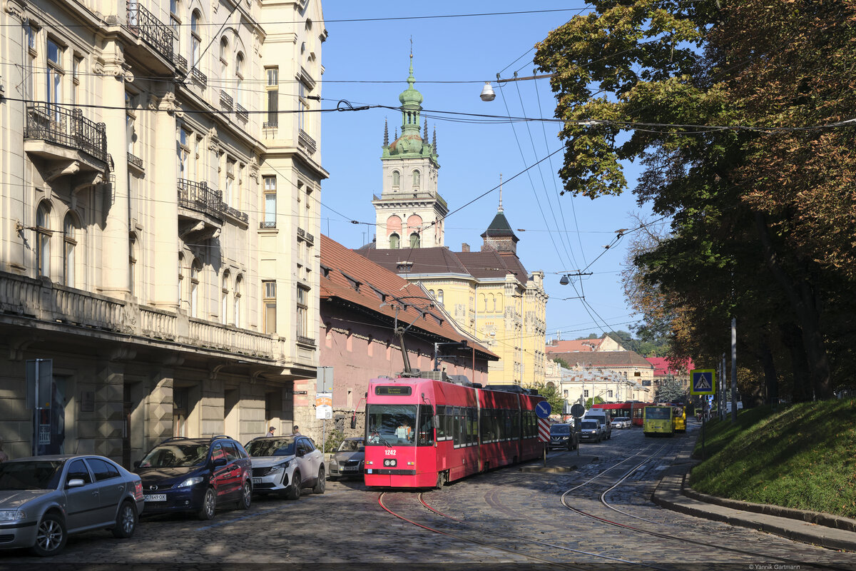 Der KT4SU 1025 aus dem Jahr 1982 zählt zu den ältesten Fahrzeugen, die noch im Planverkehr eingesetzt werden. Am 30.08.2018 konnte er auf dem Weg zum Ploshcha Soborna in der vul. Dimitra Vitovskoho abgelichtet werden.