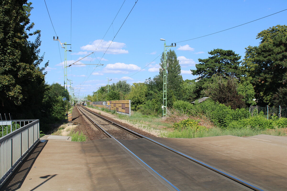 Die Balatonsüdstrecke am für Autofahrer untertunnelten Bahnübergang an der Fenyves sor in Siófok, am 23.07.2025.
