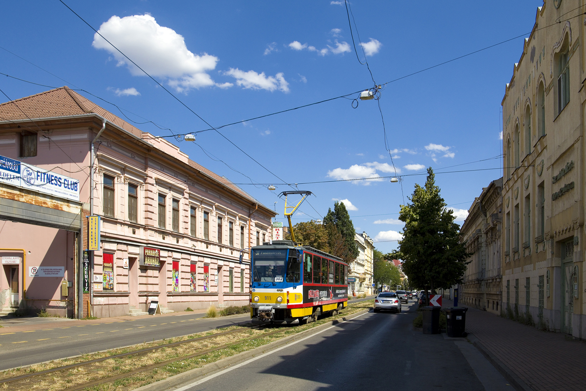 Eine Tatra Straßenbahn am Bahnhof Szeged in Ungarn. Aufgenommen am 22.10.2007