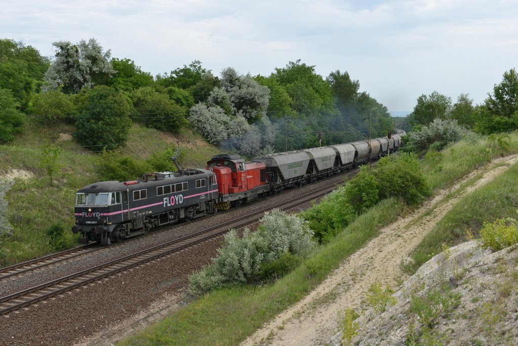 450 001 + 429 003 mit einem Getreidezug am 09.06.2012 unterwegs bei Szár.