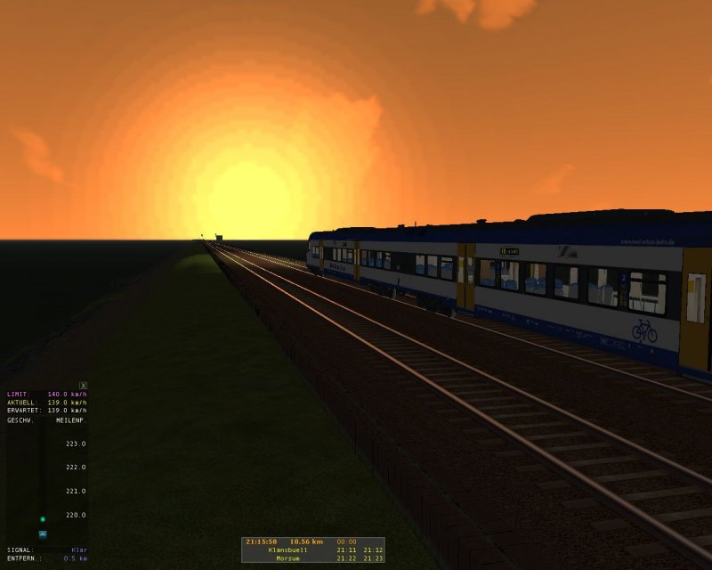 Im NOB-Steuerwagen dem Sonnenuntergang entgegen. NOB 80526 Hamburg-Altona --> Westerland (Sylt) auf dem Hindenburgdamm.