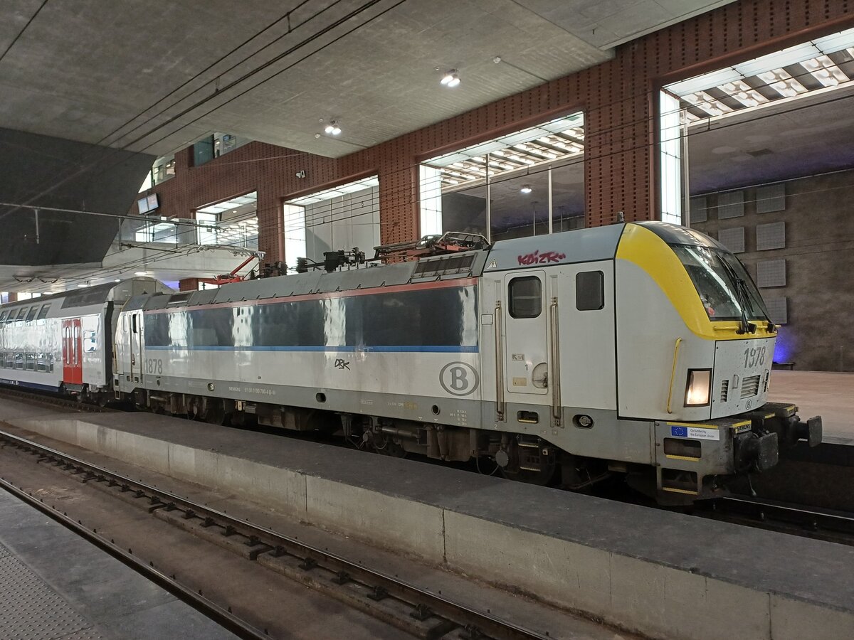 Am 31.08.2016 macht sich eine Doppeltraktion Desiro ML der Belgischen Staatsbahn in der untersten Ebene von Antwerpen Centraal auf den Weg in Richtung Brüssel.
