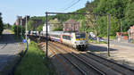 Elektrolok 1875 mit Sonderlackierung (Werbung für Arbeitsstellen bei der Bahn) schiebt einen L-Zug nach Eupen. Liège-Guillemins am 14. Oktober 2019.