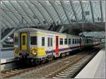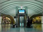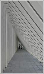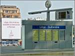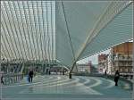 La gare Liège-Guillemnis. Der Bahnhof Lüttich-Guillemins. Eine wunderbare Konstruktion. Mittig unten befindet sich das Reisezentrum und die verschiedenen Boutiquen. Eine Ebene höher liegen die Gleise. Rechts und links die grosszügig angelegten Fussgängerbrücken, die zu den einzelnen Gleisen führen (man kann auch von der untersten Ebene mit einem Lift durch eine Glasröhre nach oben fahren), und dahinter die ebenfalls überdachte Zufahrtstrasse mit den Kurzzeitparkplätzen. Aufgenommen am 03/07/2010.