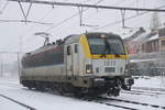 Ein Eurosprinter der SNCB wartet am 30.1.19 im verschneiten Bahnhof von Welkenrath auf seine Weiterfahrt in Richtung Lüttich.