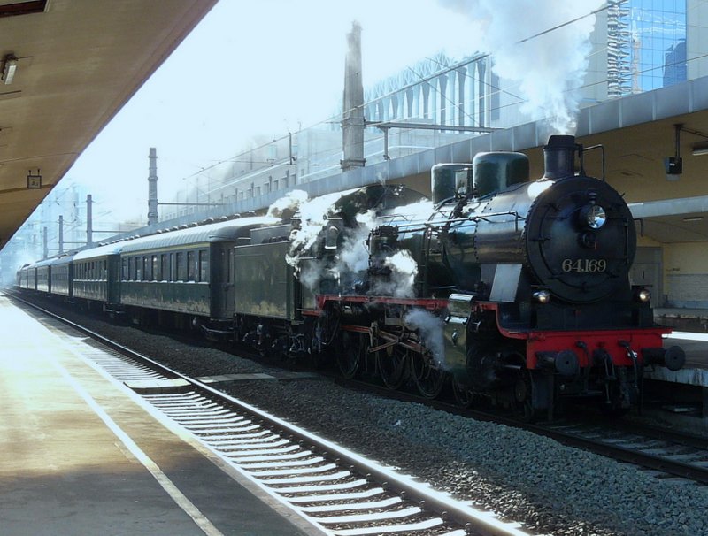 Der Dampfsonderzug steht zur nächsten Rundfahrt in die Umgebung von Brüssel bereit. Bild aufgenommen im Bahnhof Brüssel Nord am 17.02.08.