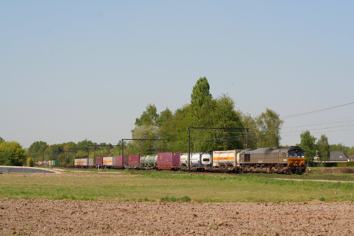 Class 66 266009-0 von Railtraxx mit Containerzug aufgenommen am 06.03.2021 in Bahnhof Mechelen Nekkerspoel