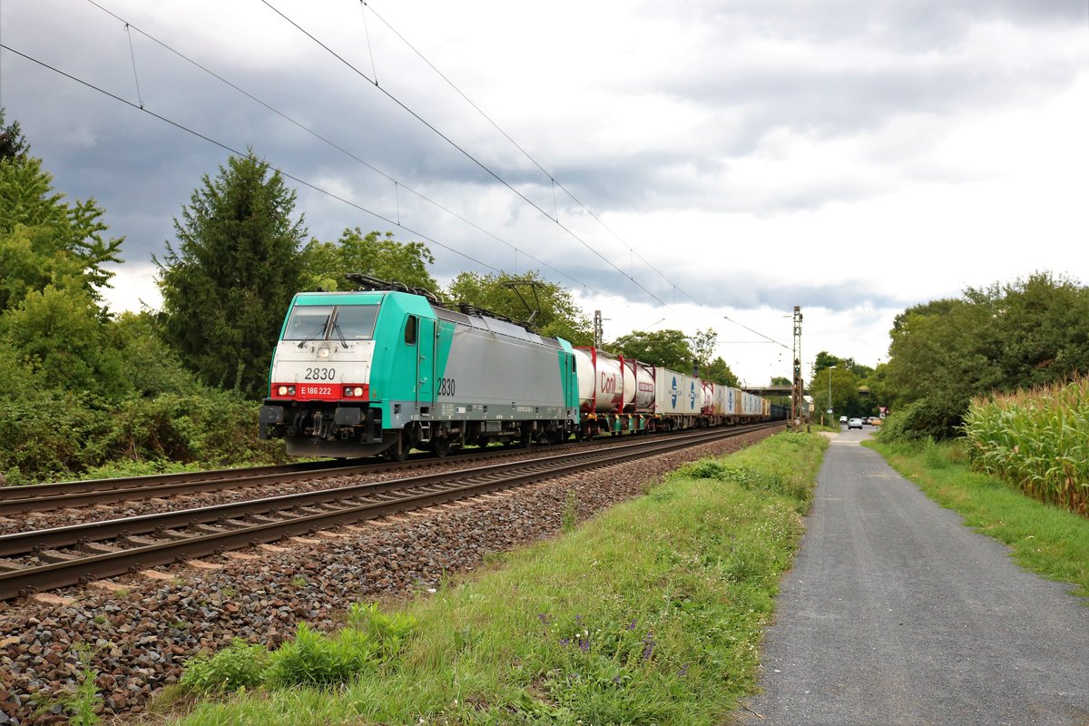 186 231 alias 2839 zieht einen gemischten Güterzug durch Bassenge Richtung Tongeren. Aufnahme vom 11/08/2018.