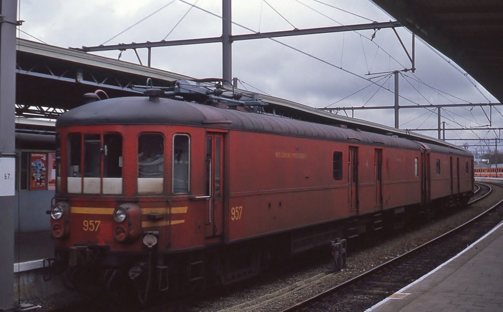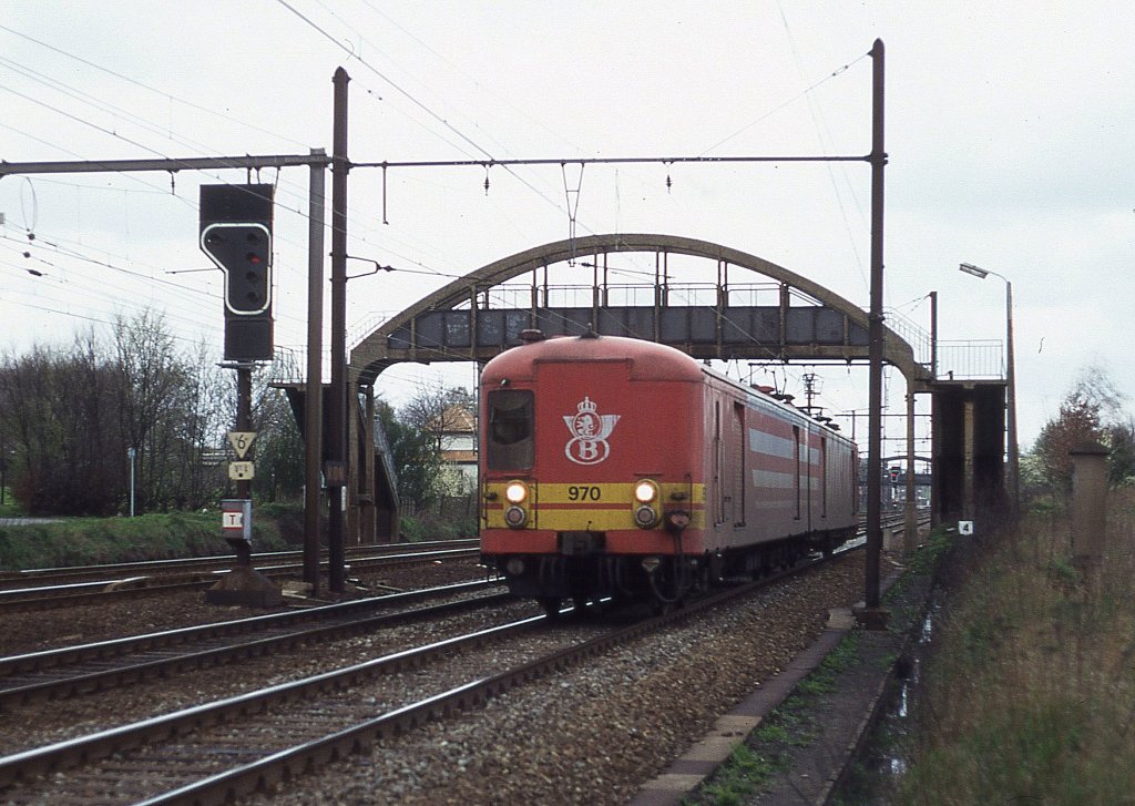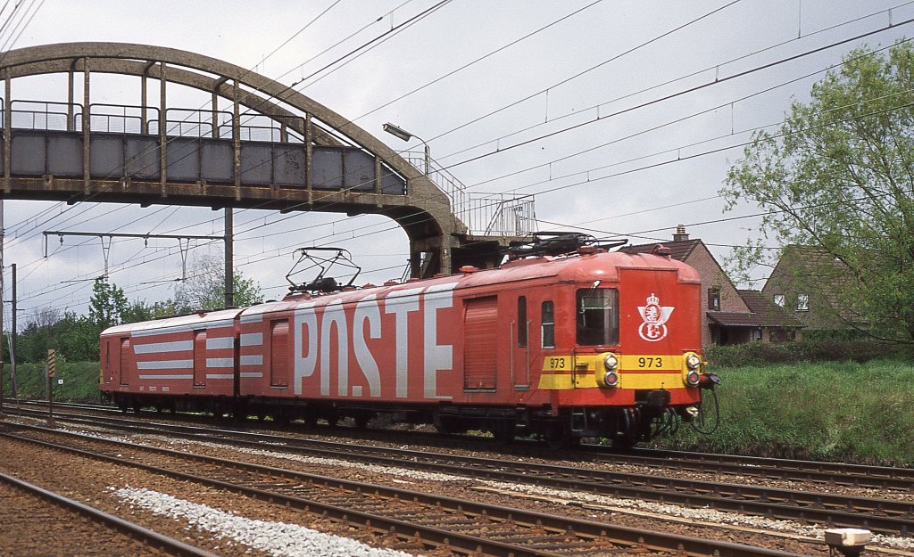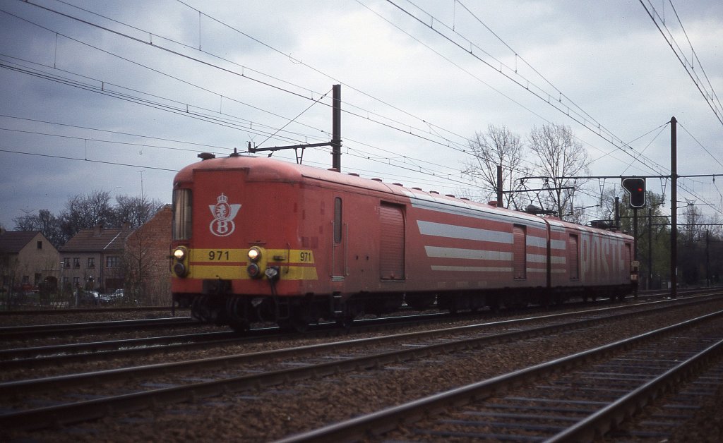 Der Posttriebwagen 971 durchfährt am 5.4.1996 um 13.49 Uhr
