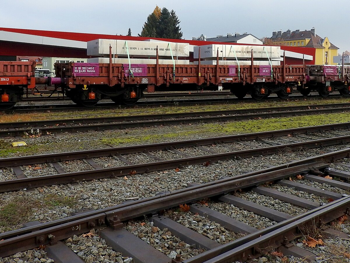 Belgischer Drehgestell-Flachwagen mit Seitenborden vom Einsteller LINEAS Group NV/SA mit der Nr. 31 RIV 88 B-LNS 3952 444-0 Remms beladen mit Aluminium-Brammen am 22.04.20 Magdeburg Neustadt. Lothar Stöckmann