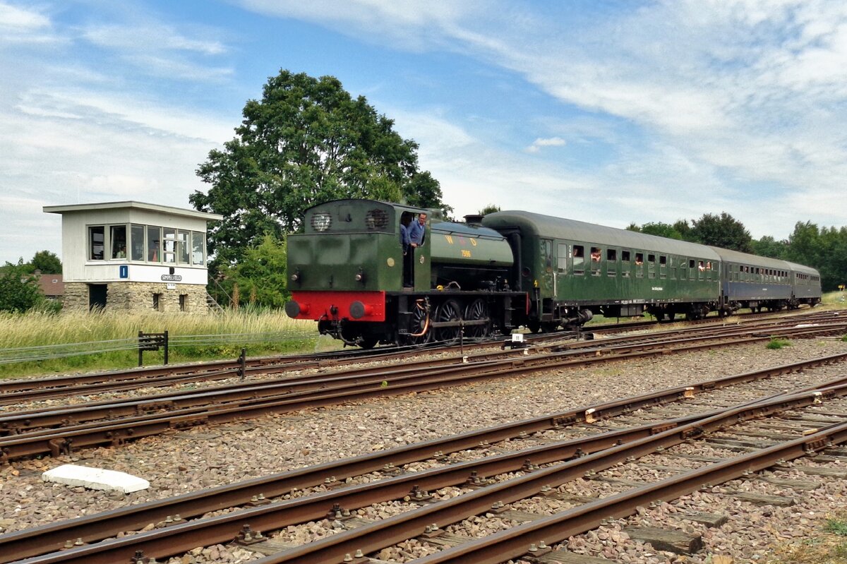 War Department 75196 -heute in Besitz der SCM (Stoomcentrum Maldegem in Flandern)- treft in Simpelveld ein mit ein Dampfpendelzug aus Kerkrade am 8 Juli 2017. Leonardus Schrijvers
