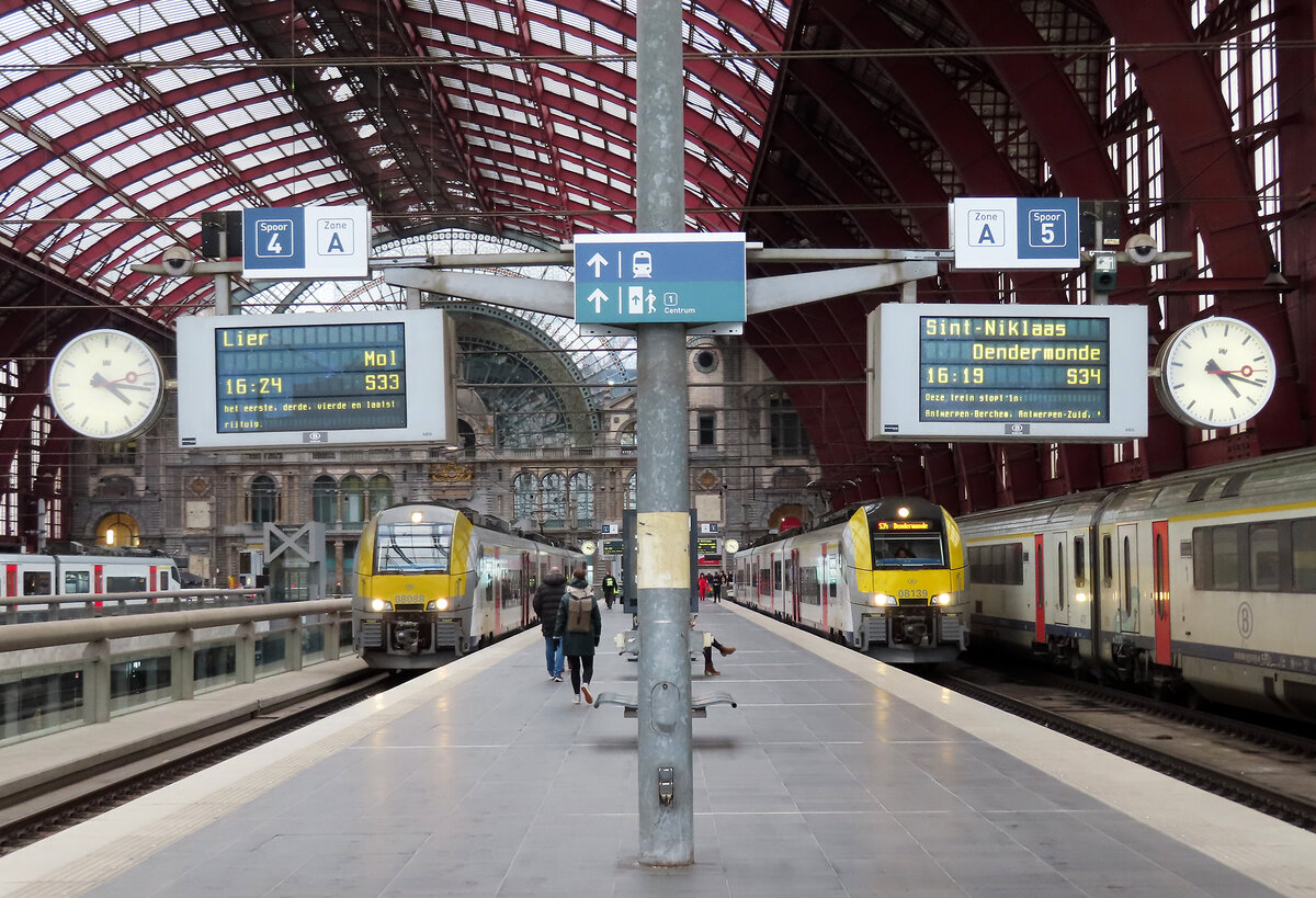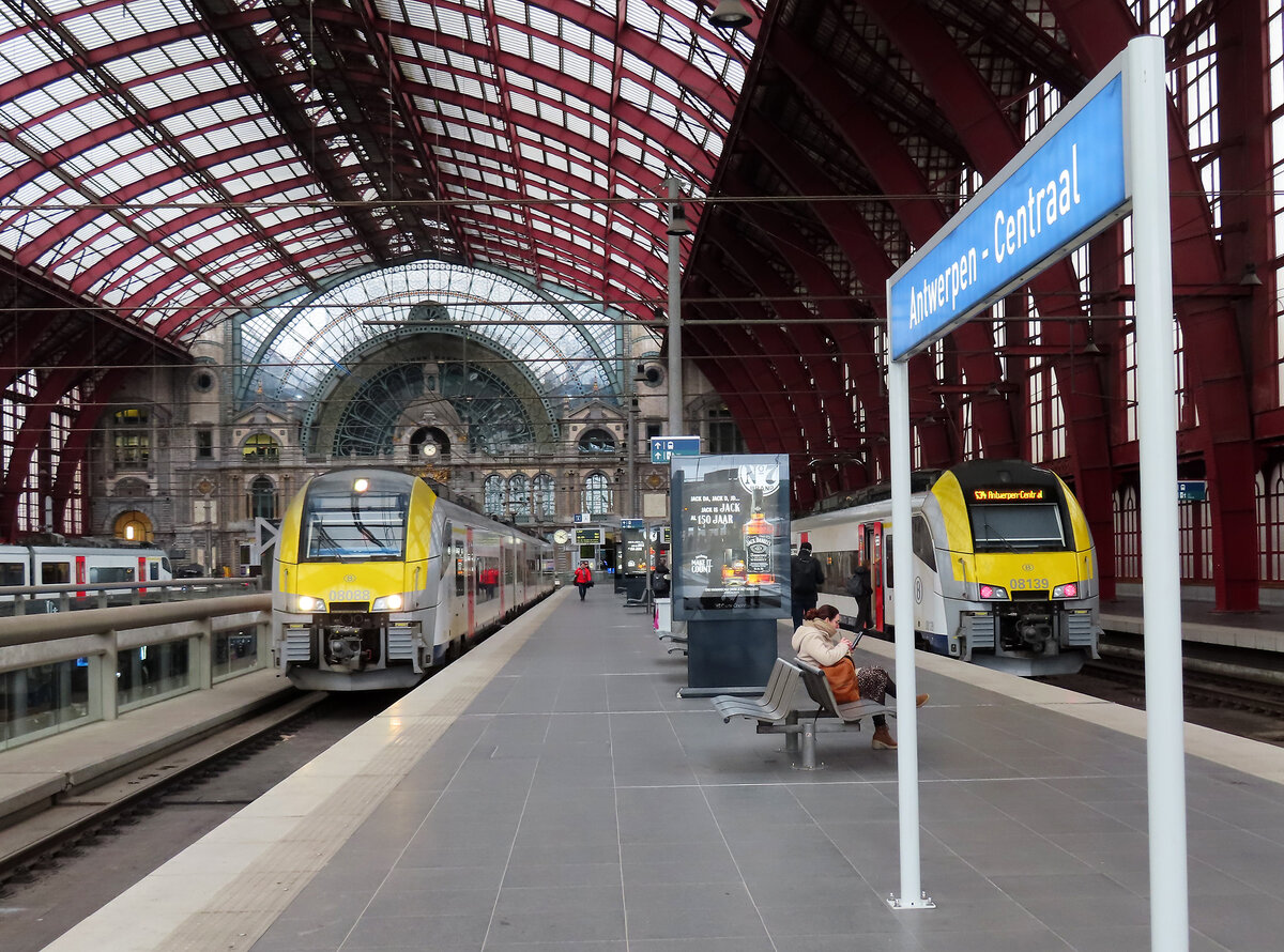 Triebzug 08018 steht in Antwerpen Centraal, 13.12.2018.