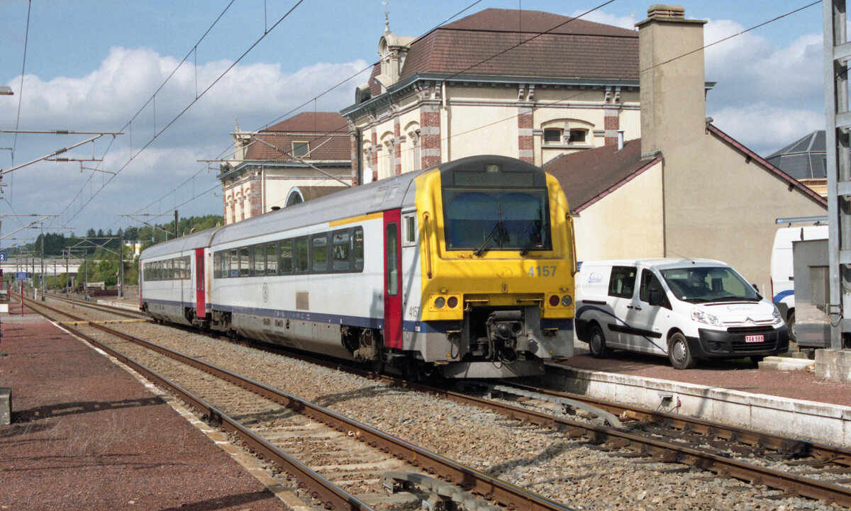 NMBS 4157 war als L-5961 aus Libramont angekommen und bis zur rückfahrt als L-5985 waren es noch 2 Stunden. Der Zug wartete wie üblich am Bahnhof Virton. 12.09.2009. Scanbild 17511, Fuji S200. Rob Freriks