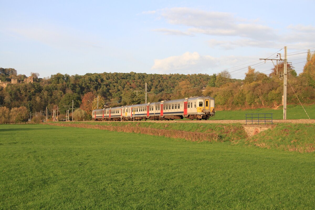 Ein Triebzug der SNCB 646 kommt aus Spa-Géronstère(B nach Aachen-Hbf und kamm aus Richtung Welkenraedt(B),Lontzen(B),Astenet(B),Hergenrath(B) und fährt gleich in den Aachener-Buschtunnel ein. Aufgenommen von einer Fußgängerbrückein Preusswald bei Aachen.