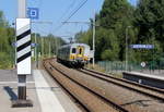 Ein Triebzug der SNCB 652 kommt aus Aachen-Hbf nach Spa-Géronstère(B) und kommt aus Richtung Aachen-Hbf,Aachen-Süd(D) und fährt in den Bahnhof von Hergenrath(B) ein und hält in Hergenrath(B) und fährt dann weiter in Richtung ,Astenet(B),Lontzen(B),Welkenraedt(B). Aufgenommen vom Bahnsteig 1 in Hergenrath(B).