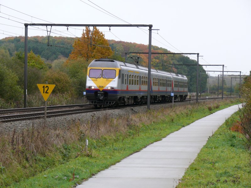 Triebwagen 304 der Serie AM80 als IR2934 Liers - Antwerpen-Centraal, hier aufgenommen kurz hinter Diest am 24/10/2009.