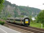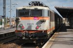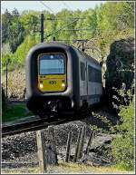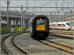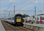 IR-i-Zug in Richtung Landen wartet im Bhf De Panne auf Abfahrt (Triebzug der BR AM 96), Juli 2011.
