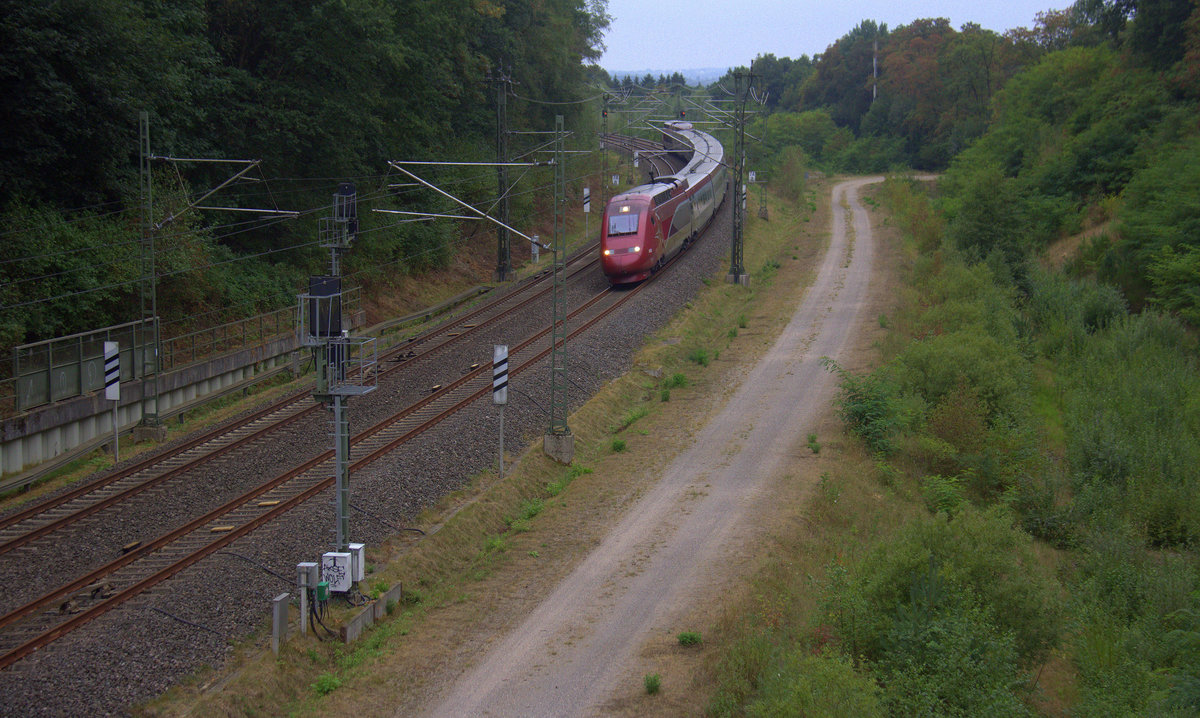 Ein Thalys aus Paris-Nord(F) nach Dortmund-Hbf(D) und kommt aus Richtung Lüttich-Guillemins(B),Walhorn(B), Hergenrath(B) und fährt gleich in den Aachener-Buschtunnel ein. Aufgenommen von einer Fußgängerbrückein Preusswald bei Aachen.